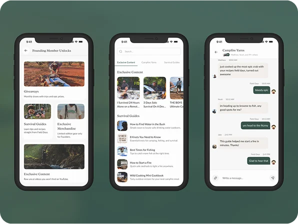 Take the Field Days experience with you wherever you go. Watch new uncut videos every week, chat directly with Field Days and other members in Campfire Yarns, and dive into guides, recipes, and survival tips you will not find anywhere else.